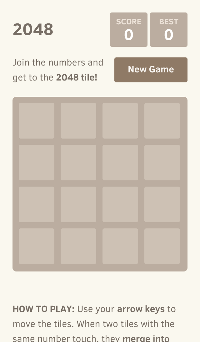 Nouvelle partieComment jouer : Utilisez vos flèches pour déplacer les tuiles. Lorsque deux tuiles avec le même nombre se touchent, elles fusionnent en une seule !
